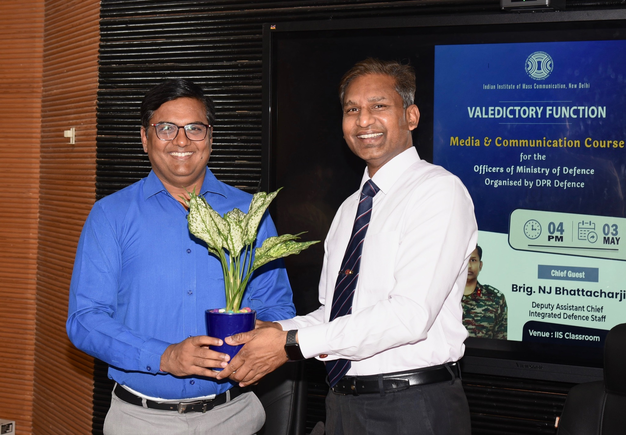जनसंपर्क निदेशालय (डीपीआर) द्वारा रक्षा मंत्रालय के अधिकारियों के लिए मीडिया और संचार पर आयोजित एक सप्ताह का लघु पाठ्यक्रम 03 मई 2024 को आईआईएमसी में समाप्त हुआ। उप सहायक प्रमुख, एकीकृत रक्षा स्टाफ (आईडीएस), ब्रिगेडियर एनजे भट्टाचार्जी ने समापन भाषण दिया। इससे पहले, पाठ्यक्रम निदेशक प्रो. (डॉ.) राकेश कुमार गोस्वामी ने मुख्य अतिथि का स्वागत किया और स्वागत भाषण दिया।